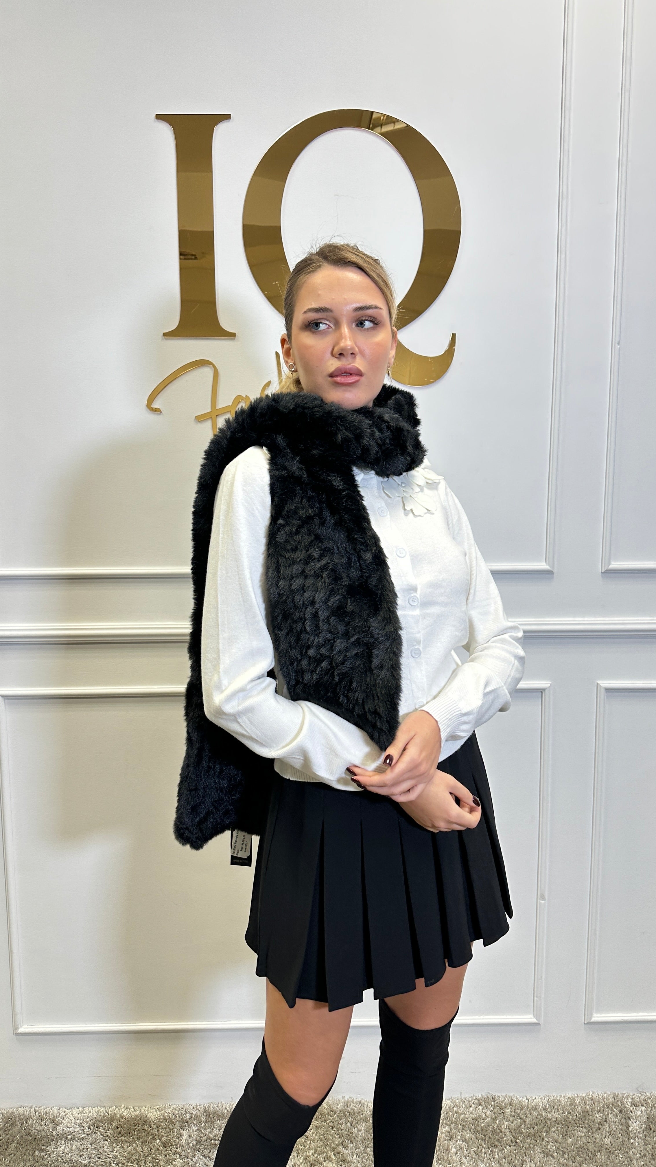 Șalul este din blanita naturala de iepure in combinatie cu tricot.