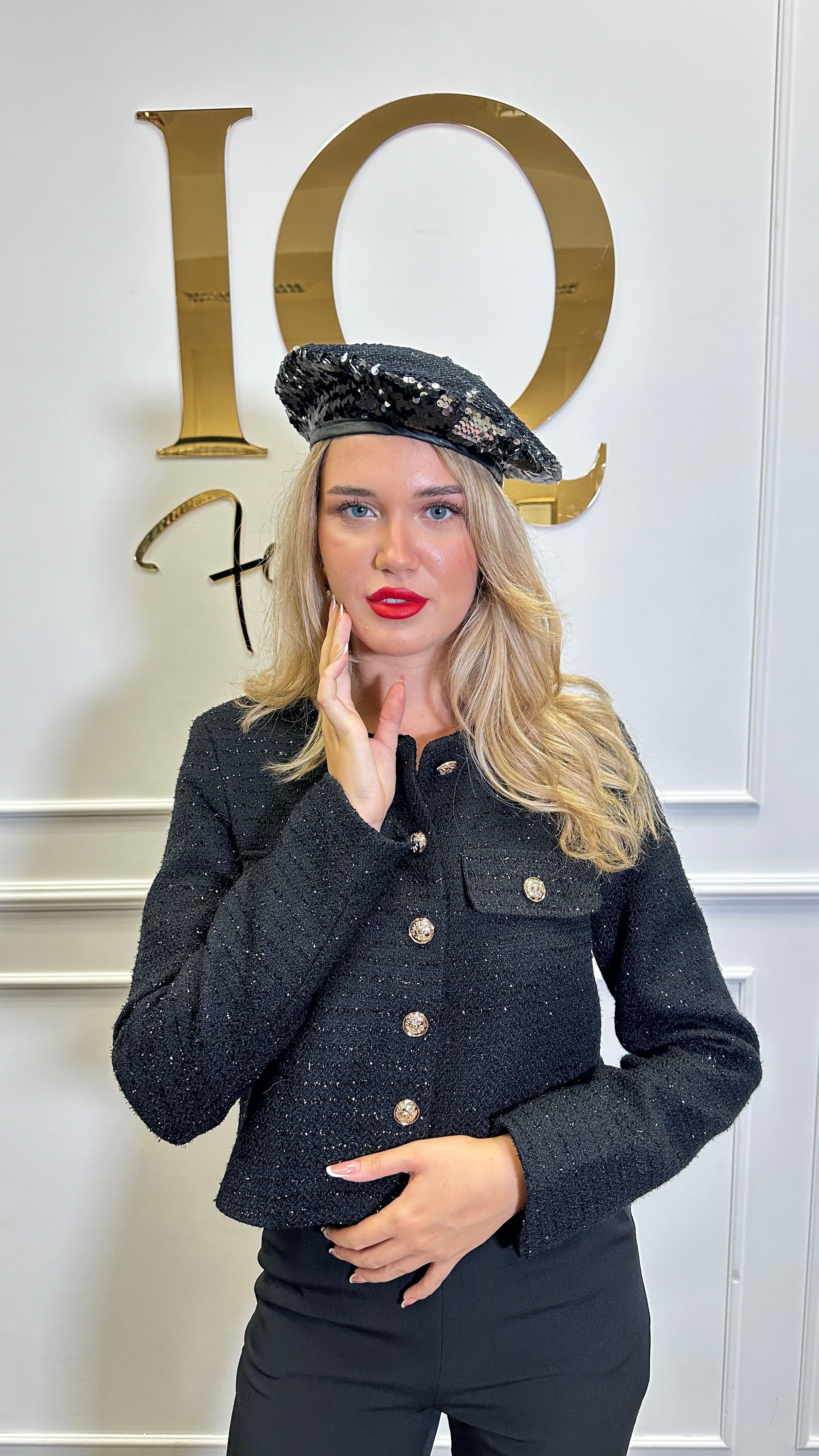 Bască din tesatura tip paiete, captusita, masura universala.