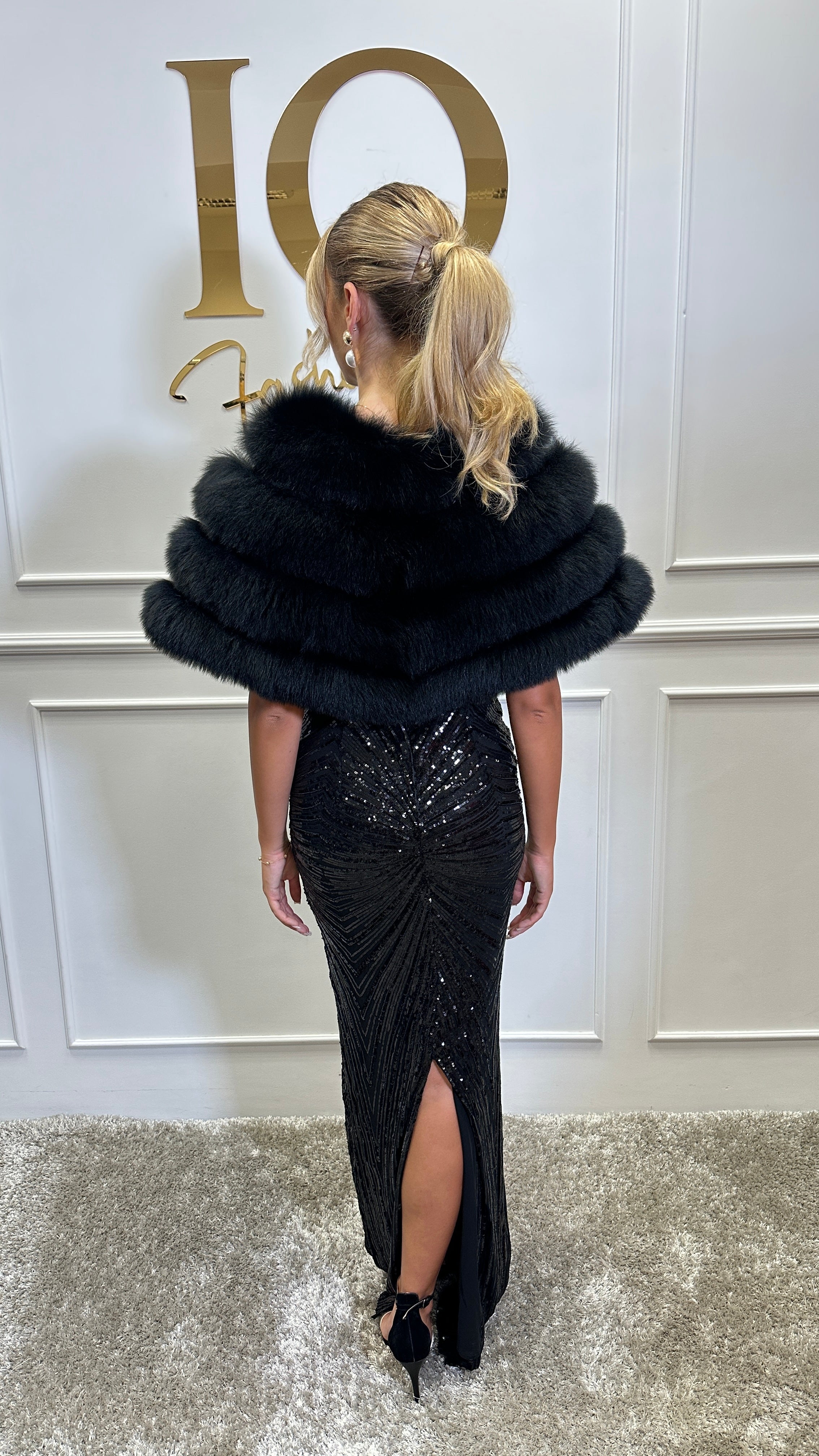 Maura universala ,se potriveste de la masura S pana la masura XL,Capa este din blana naturala de vulpe arctica,cu inchifere kn fata tip mos si baba