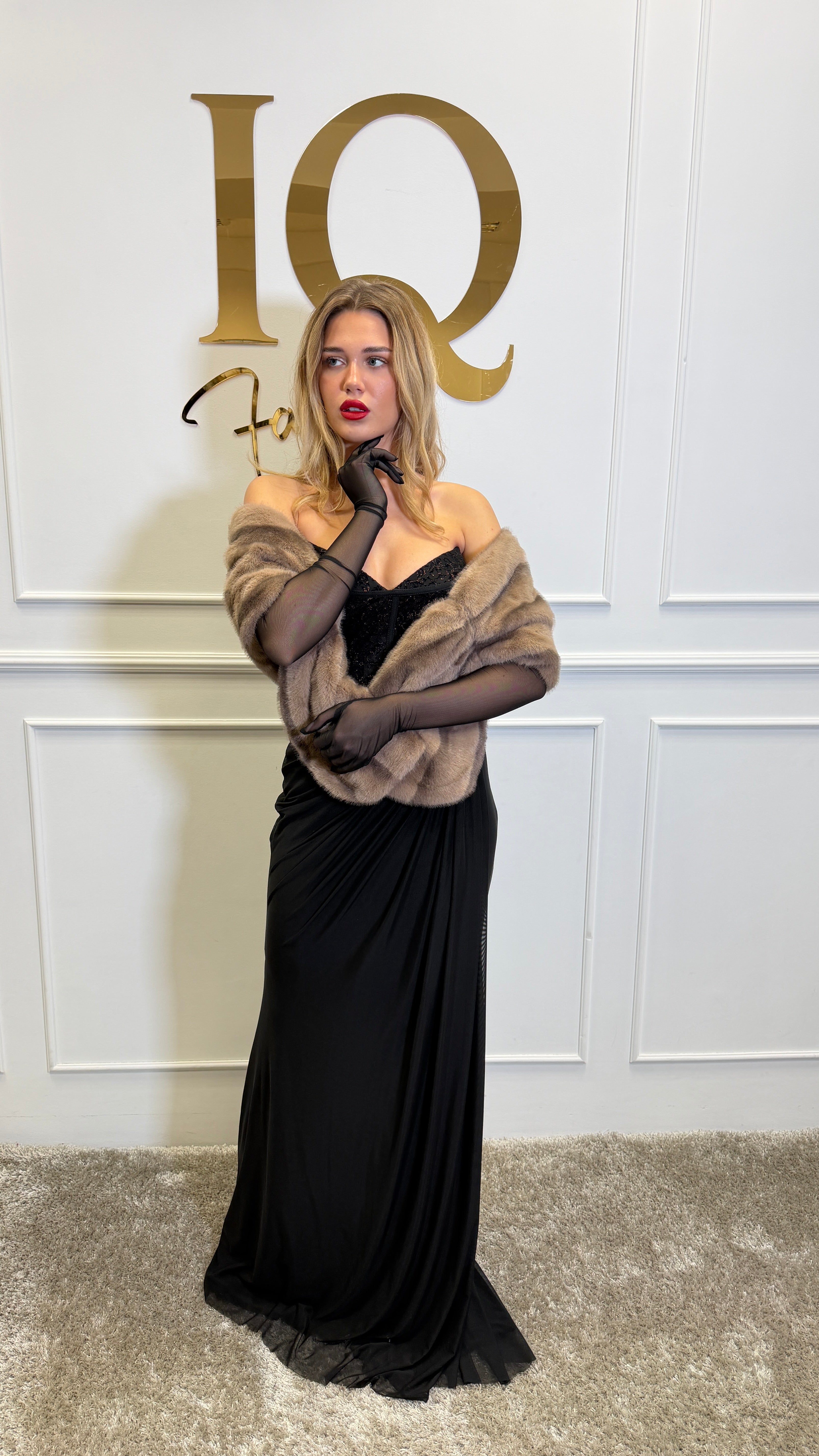 Capa luxoasa din blana articiala,cu aspect natural, extrem de fina si versatila,se potriveste atat pentru o rochie de seara,cat si peste un sacou, un palton sau peste o camasa.