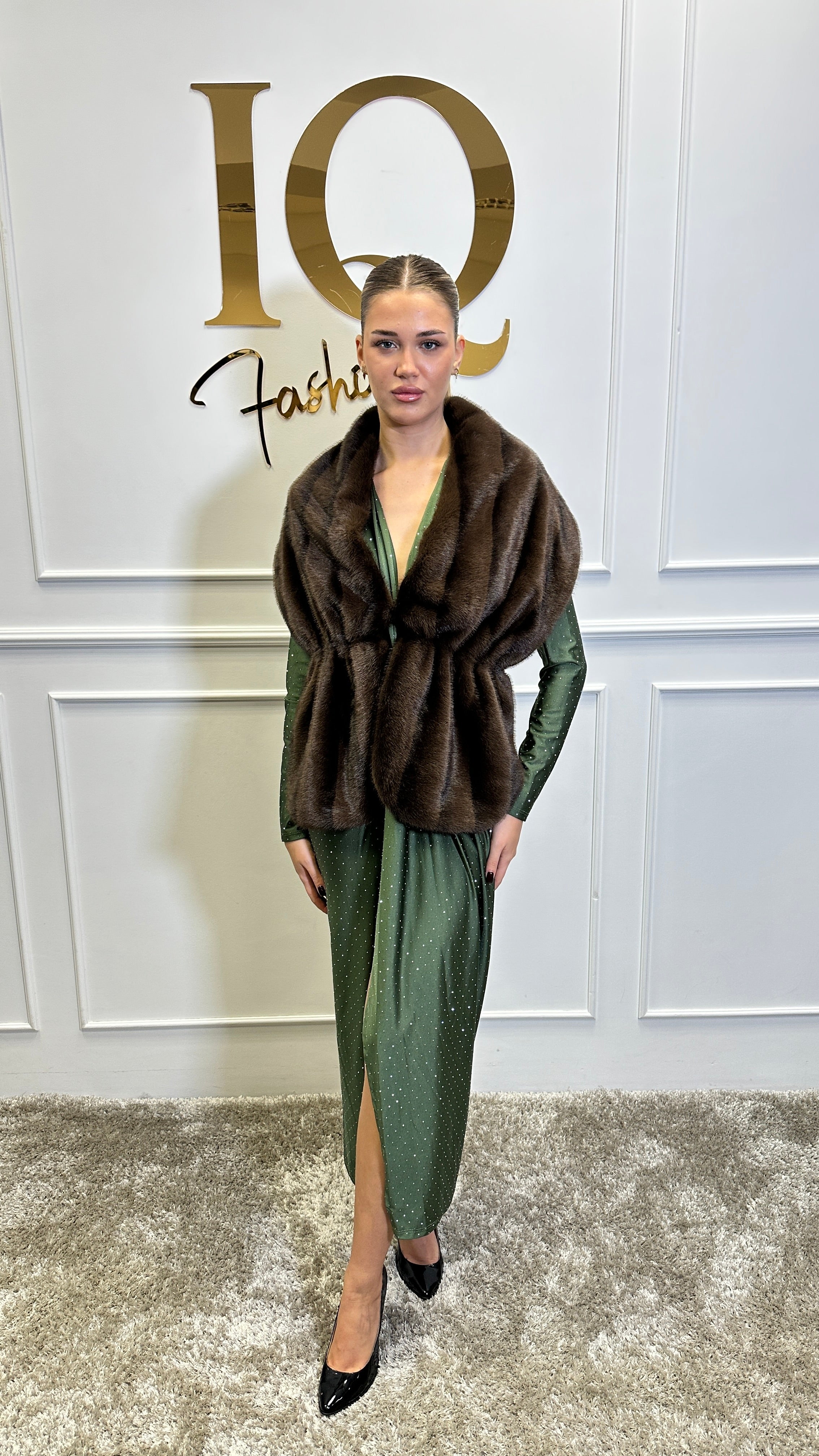 Capa luxoasa din blana articiala,cu aspect natural, extrem de fina si versatila,se potriveste atat pentru o rochie de seara,cat si peste un sacou, un palton sau peste o camasa.