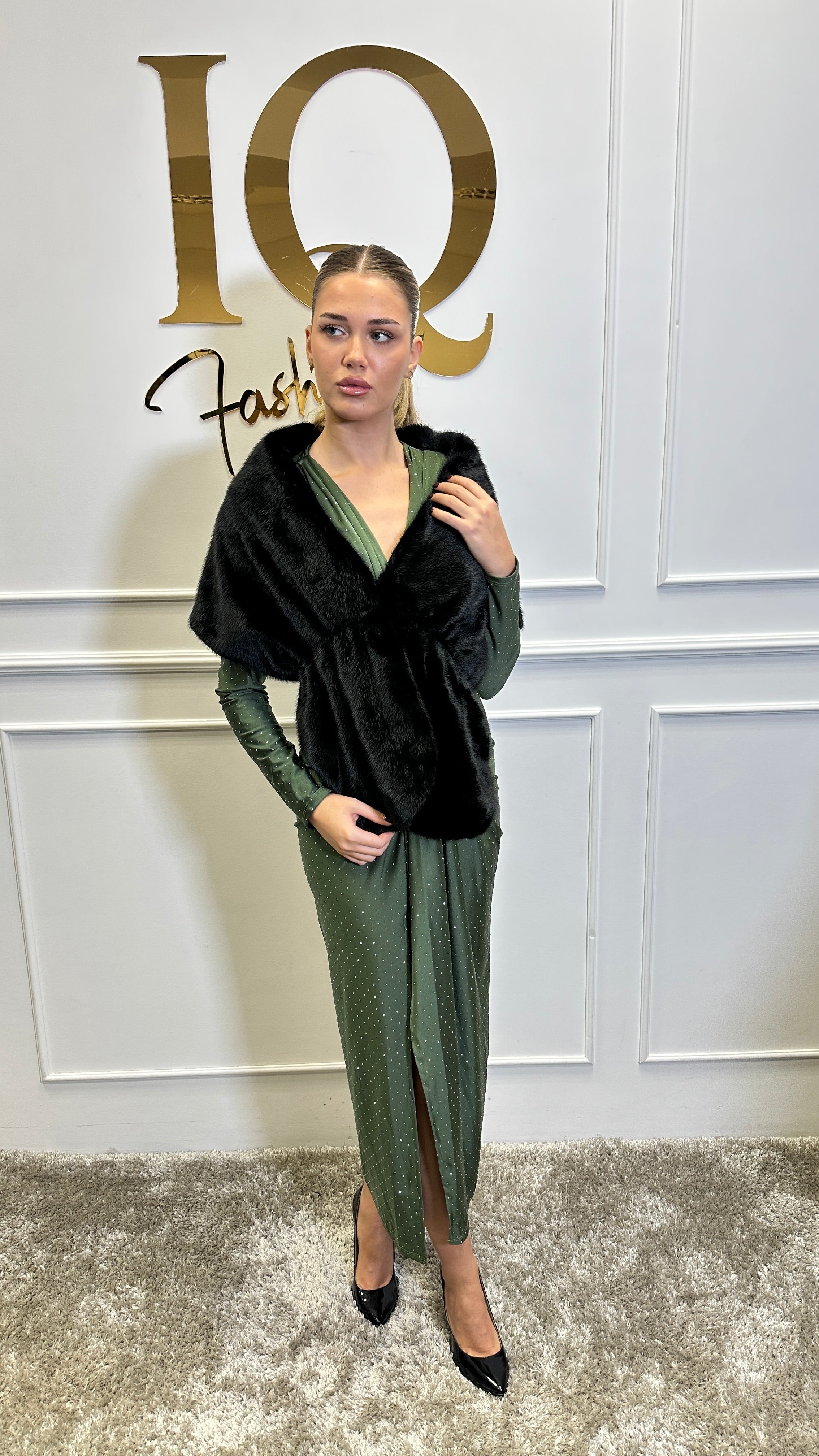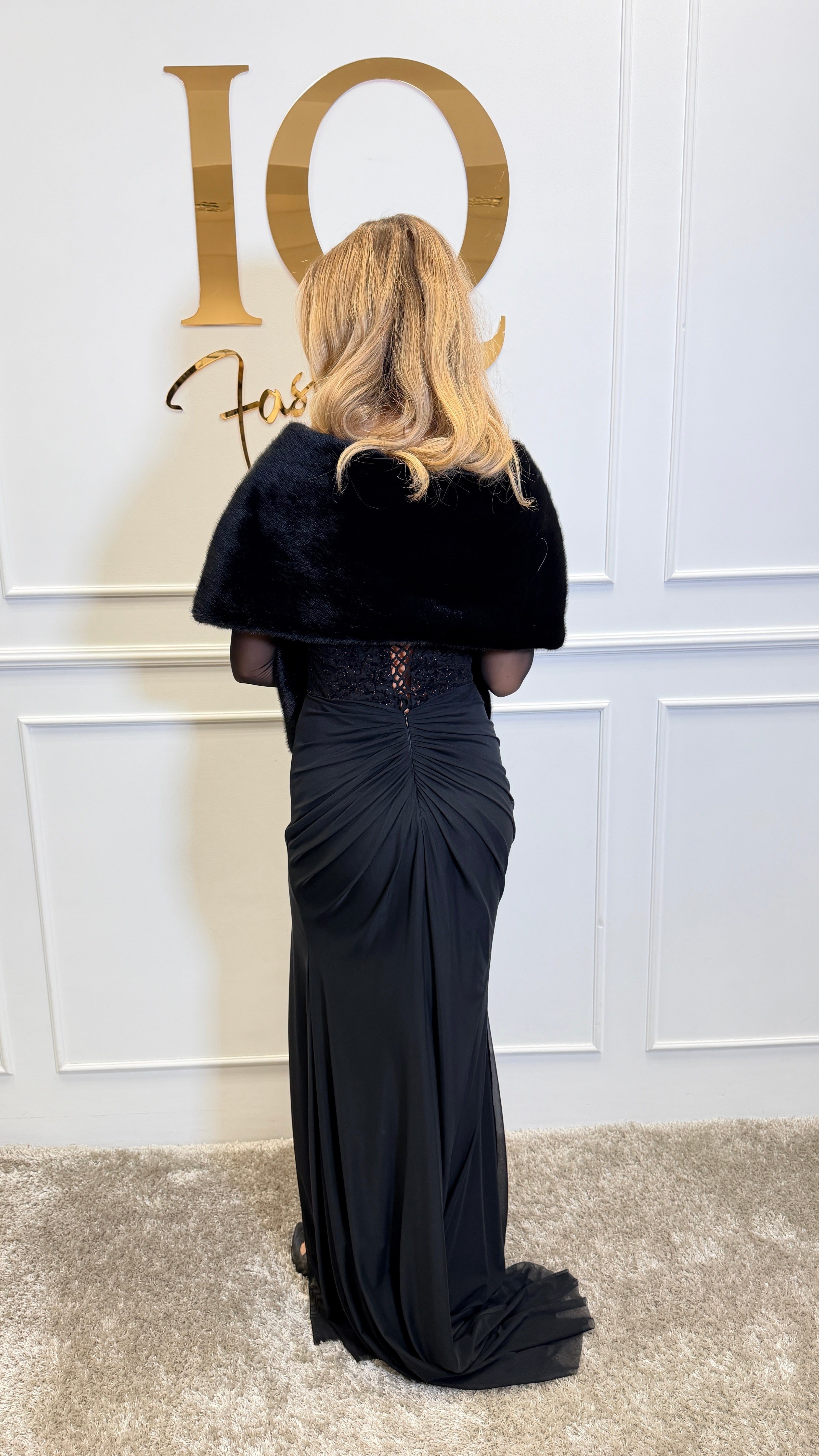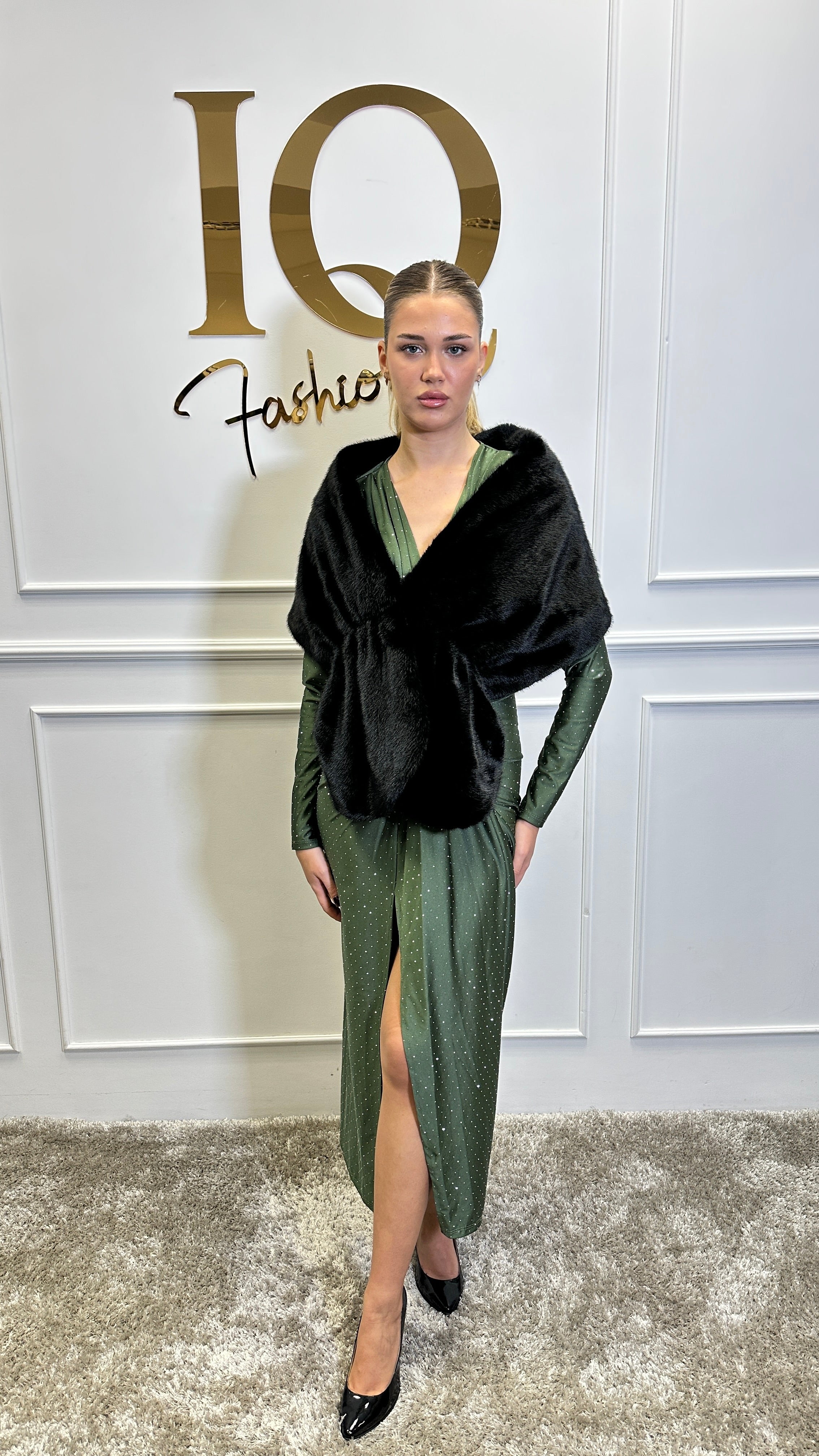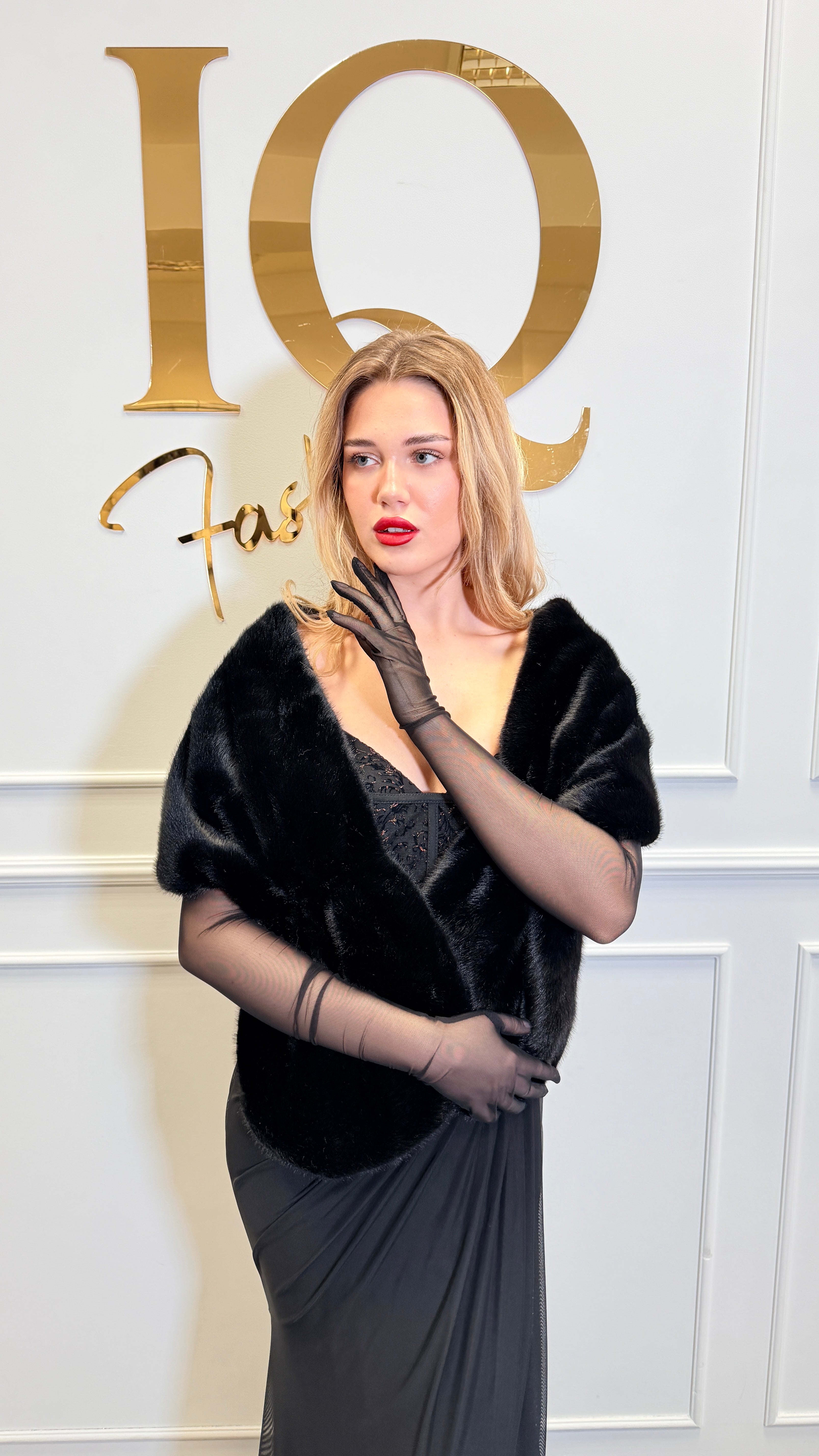 Capa luxoasa din blana articiala,cu aspect natural, extrem de fina si versatila,se potriveste atat pentru o rochie de seara,cat si peste un sacou, un palton sau peste o camasa.