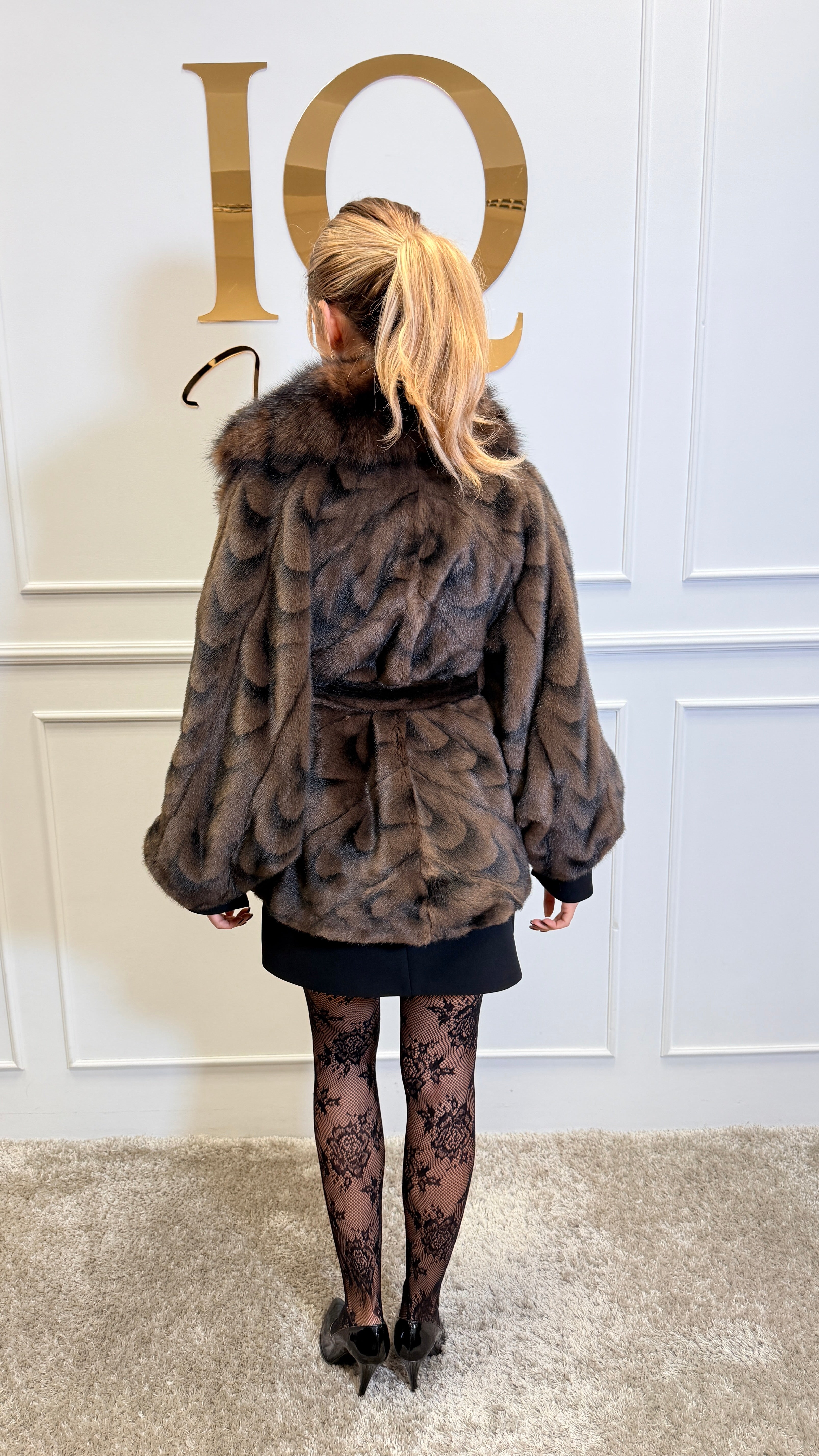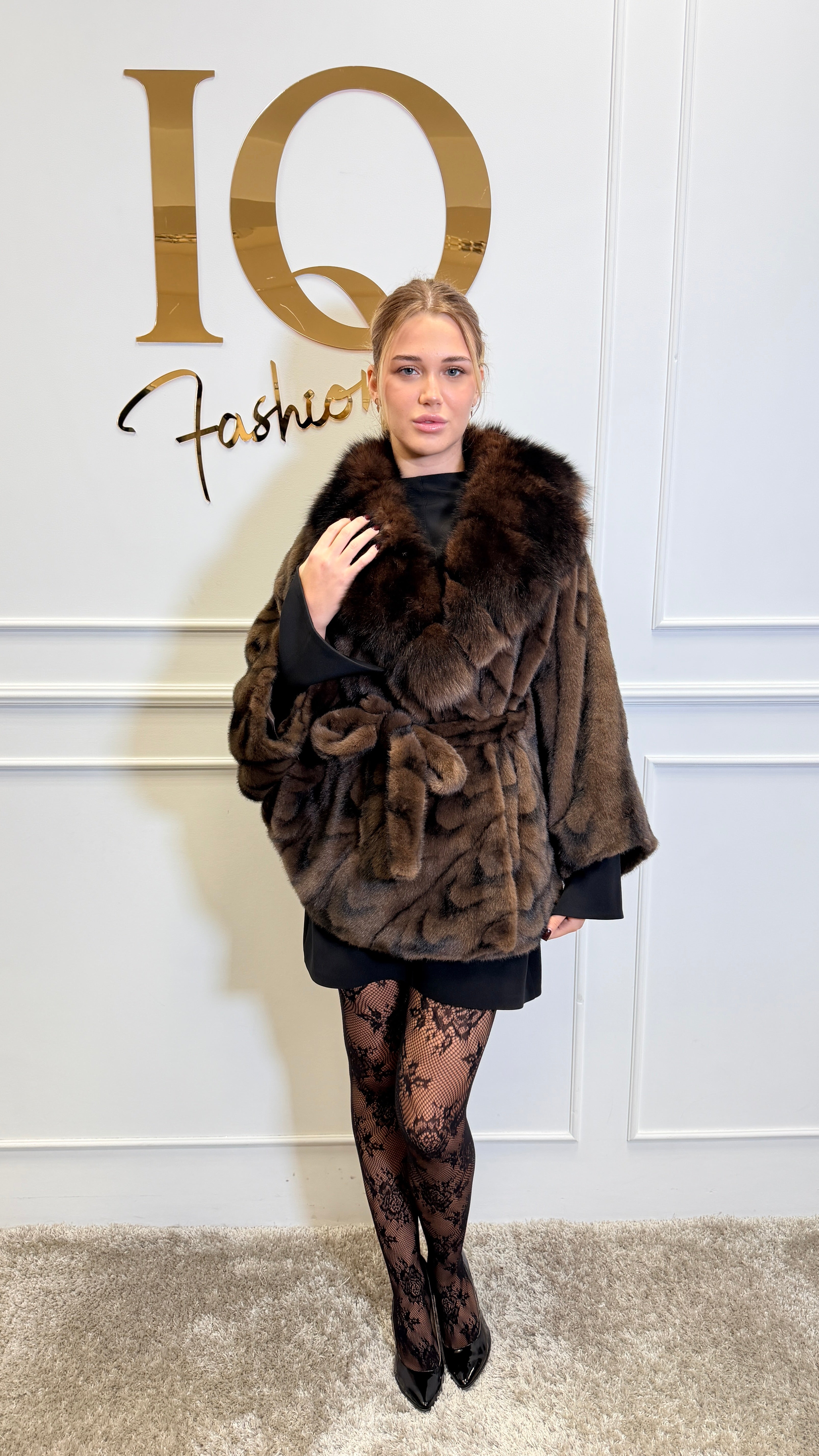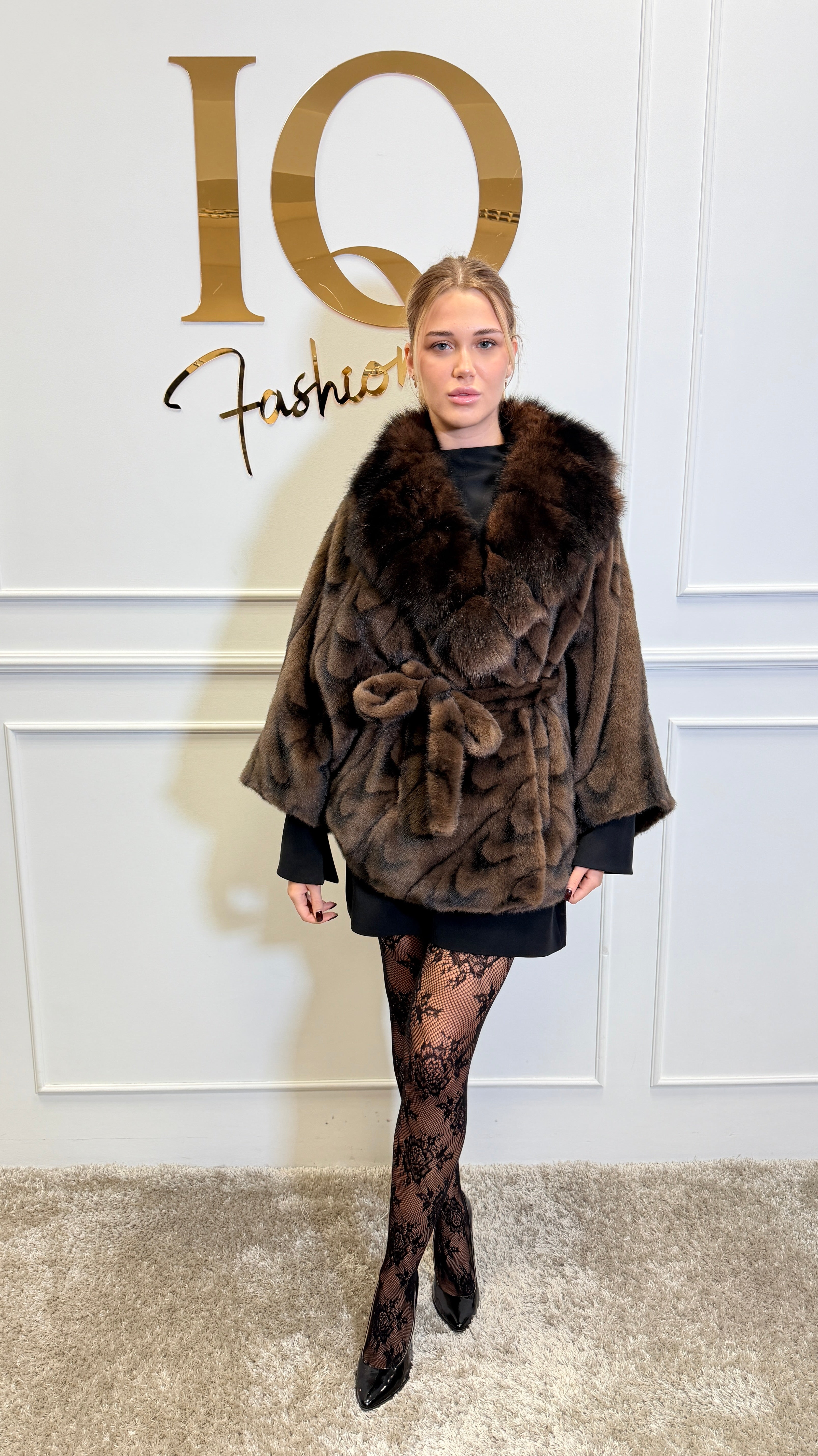 Produs este din lana de alcantara (baby lama)si accesorizat cu blana naturala de vulpe arctica Se poate executa pe multe variante de culoare si pe alte masuri in 7-8 zile lucratoare.Se portiveste si la masuri mari 75-80 kg