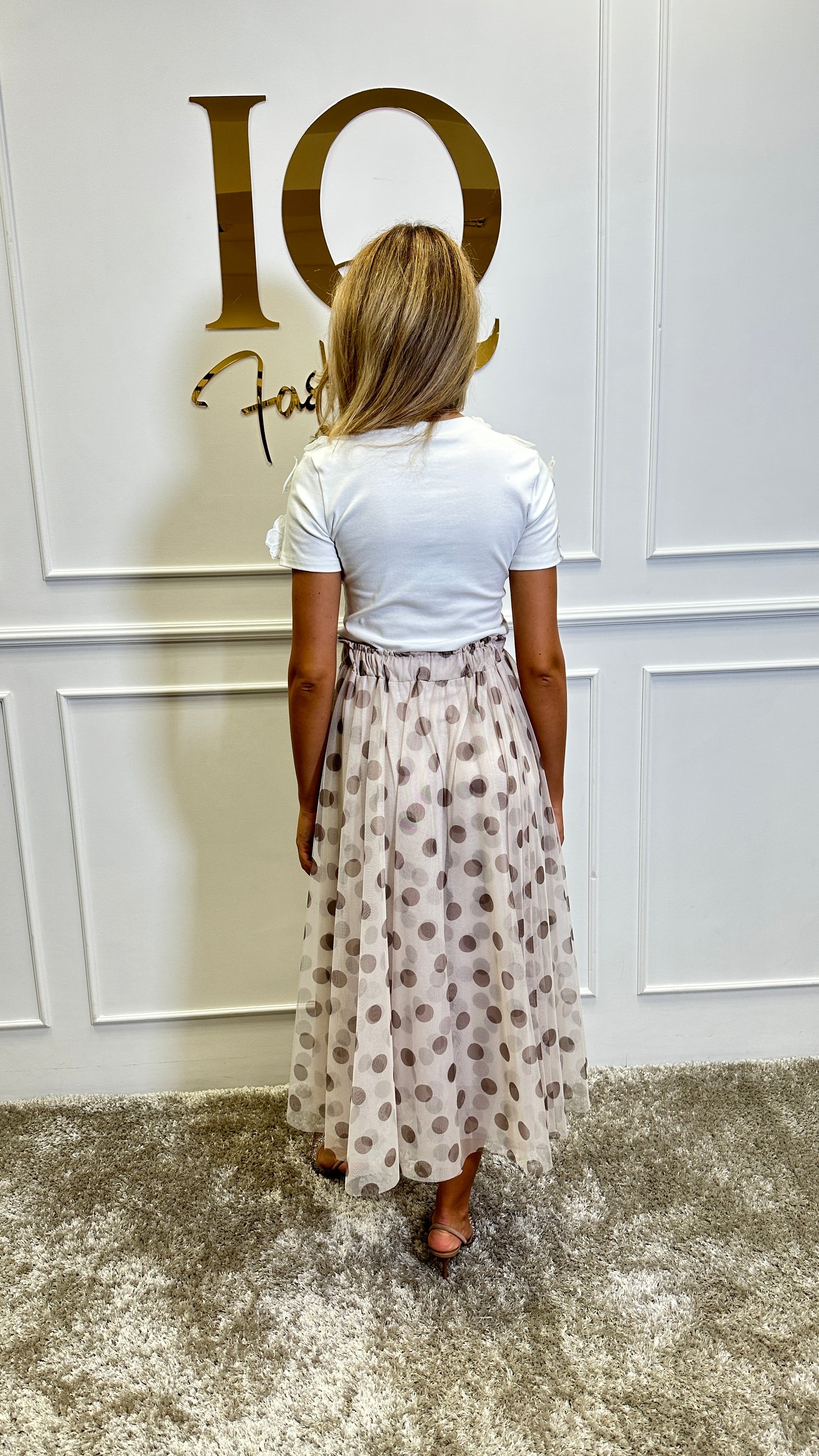 Fusta din tule,captusita,se strange in talie cu elastic.Se potriveste de la aoroximativ 80 kg