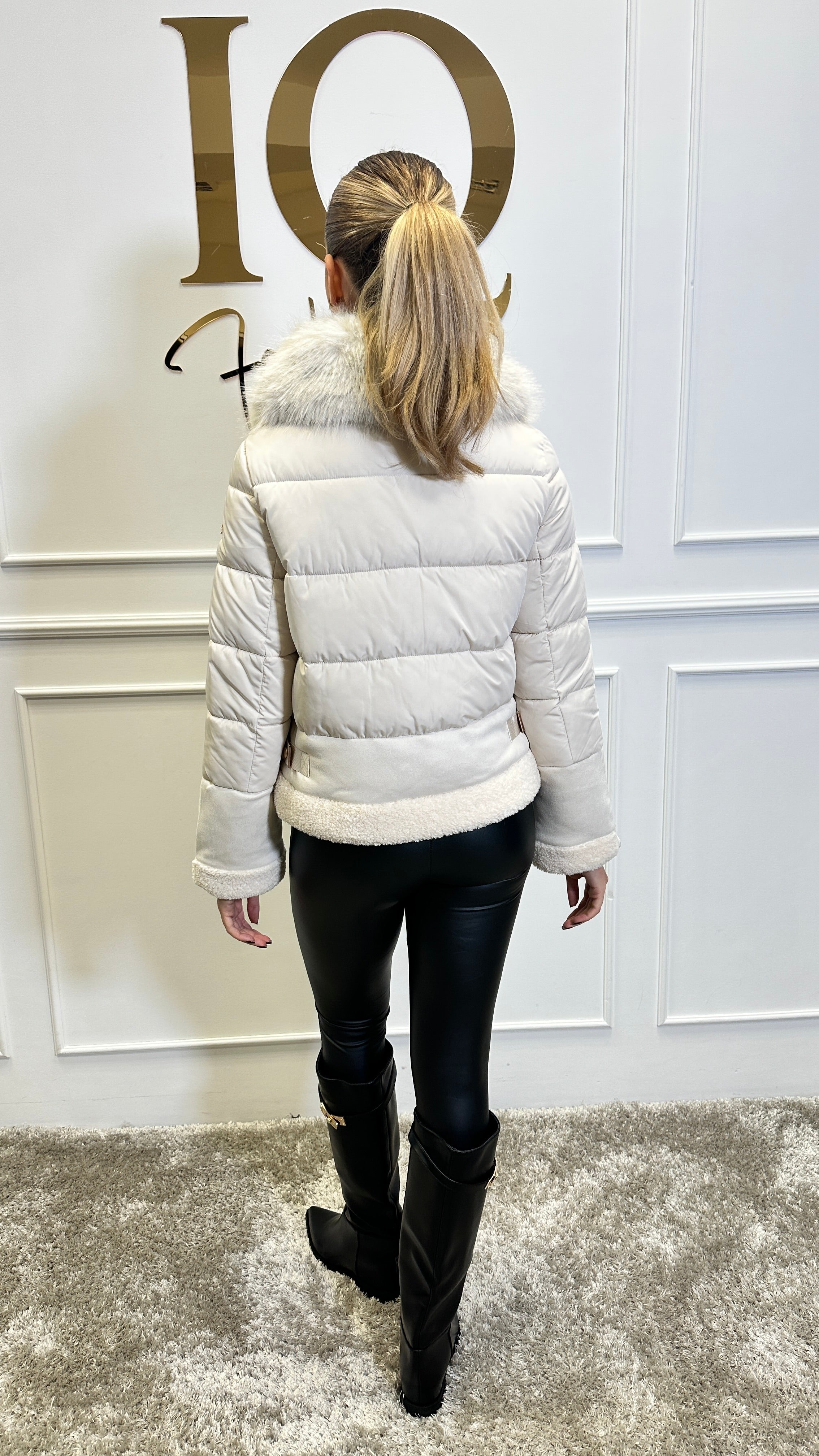 Haina fas matlasata ,eleganta si calduroasa, accesorizata cu blana artificiala.