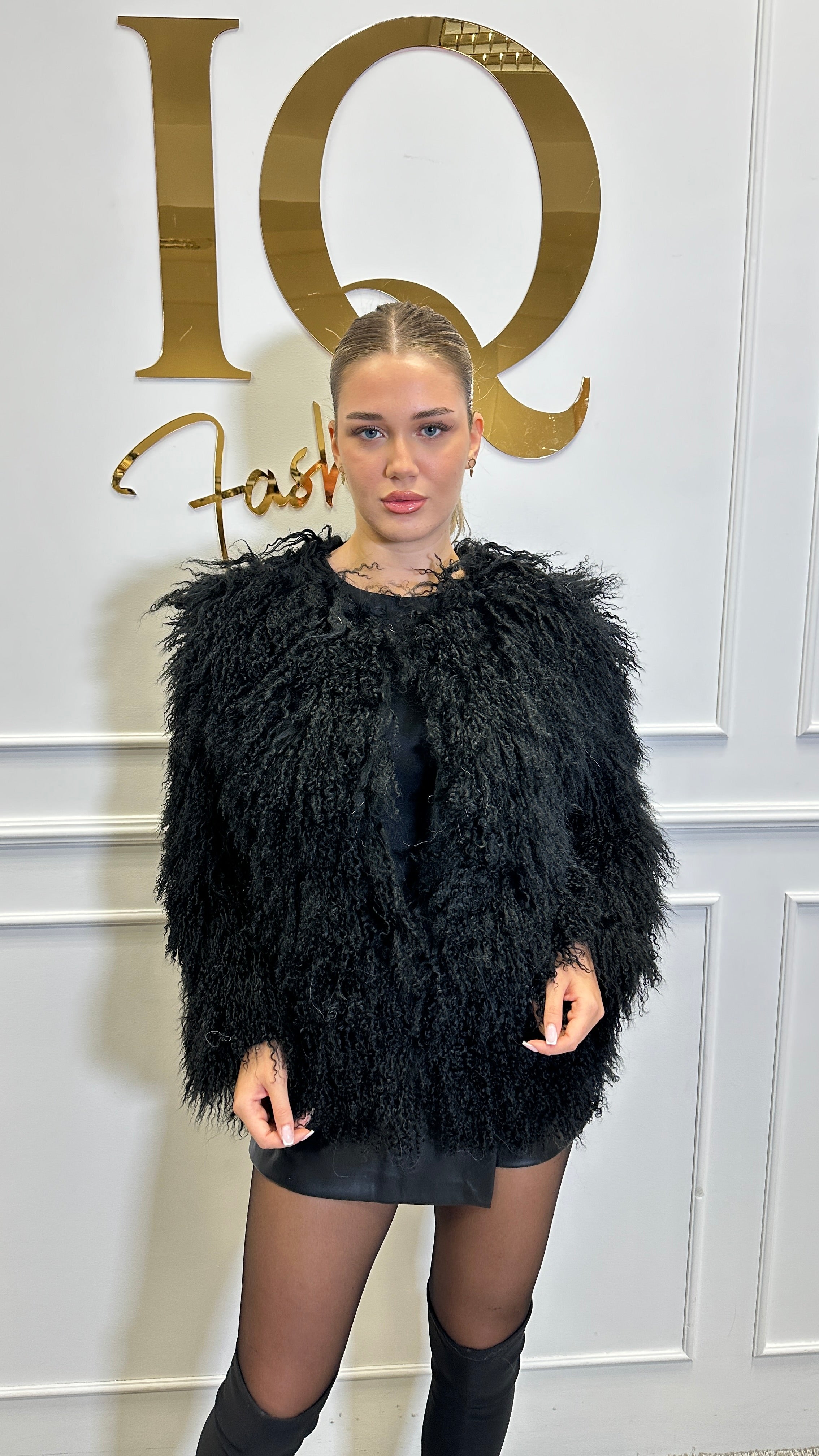 Haina din blana naturala de lama mongoleza,Manechina are 50 kg si poarta masua SLa unele masuri comanda poate dura 7-8 zile lucratoare!