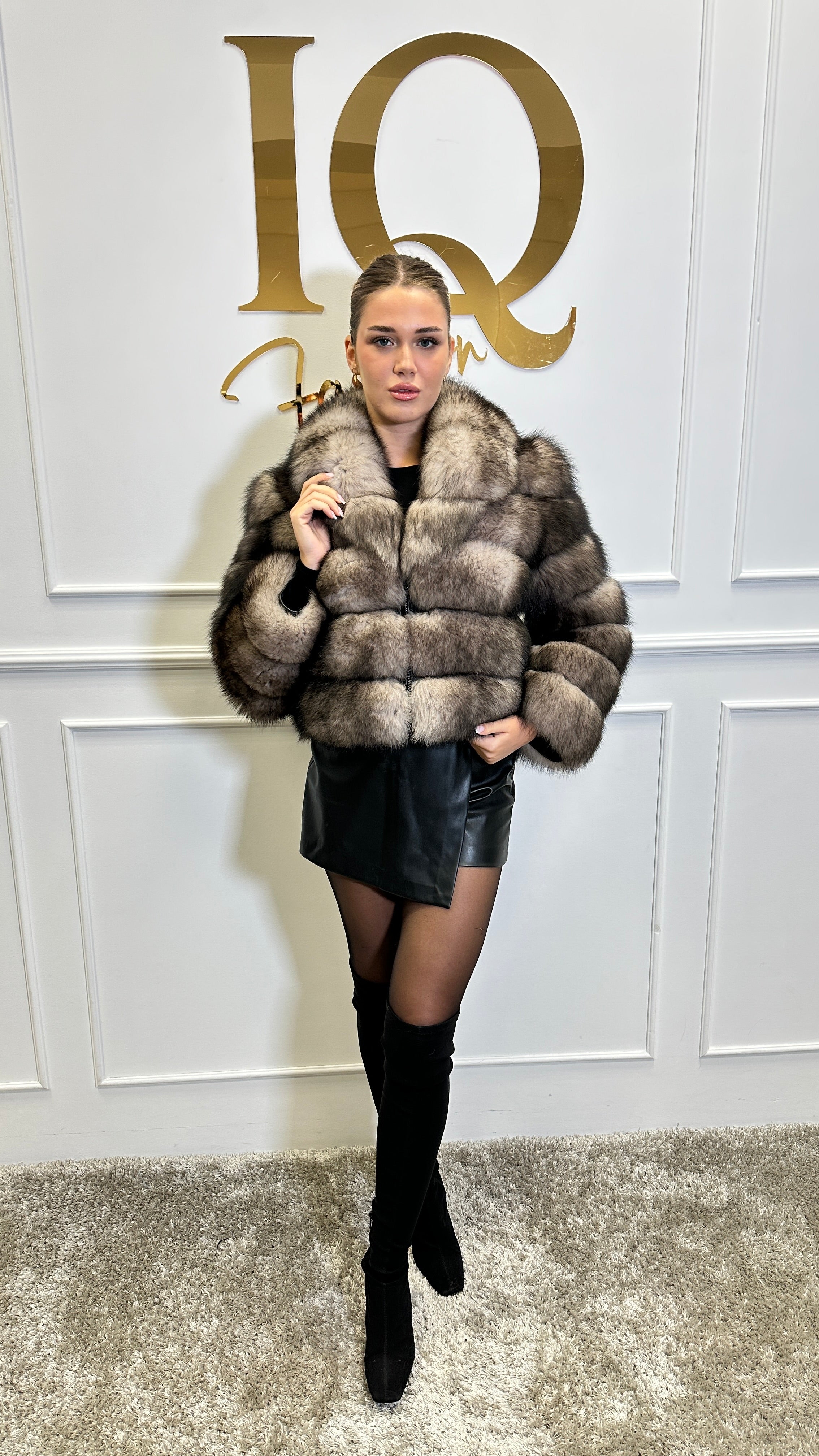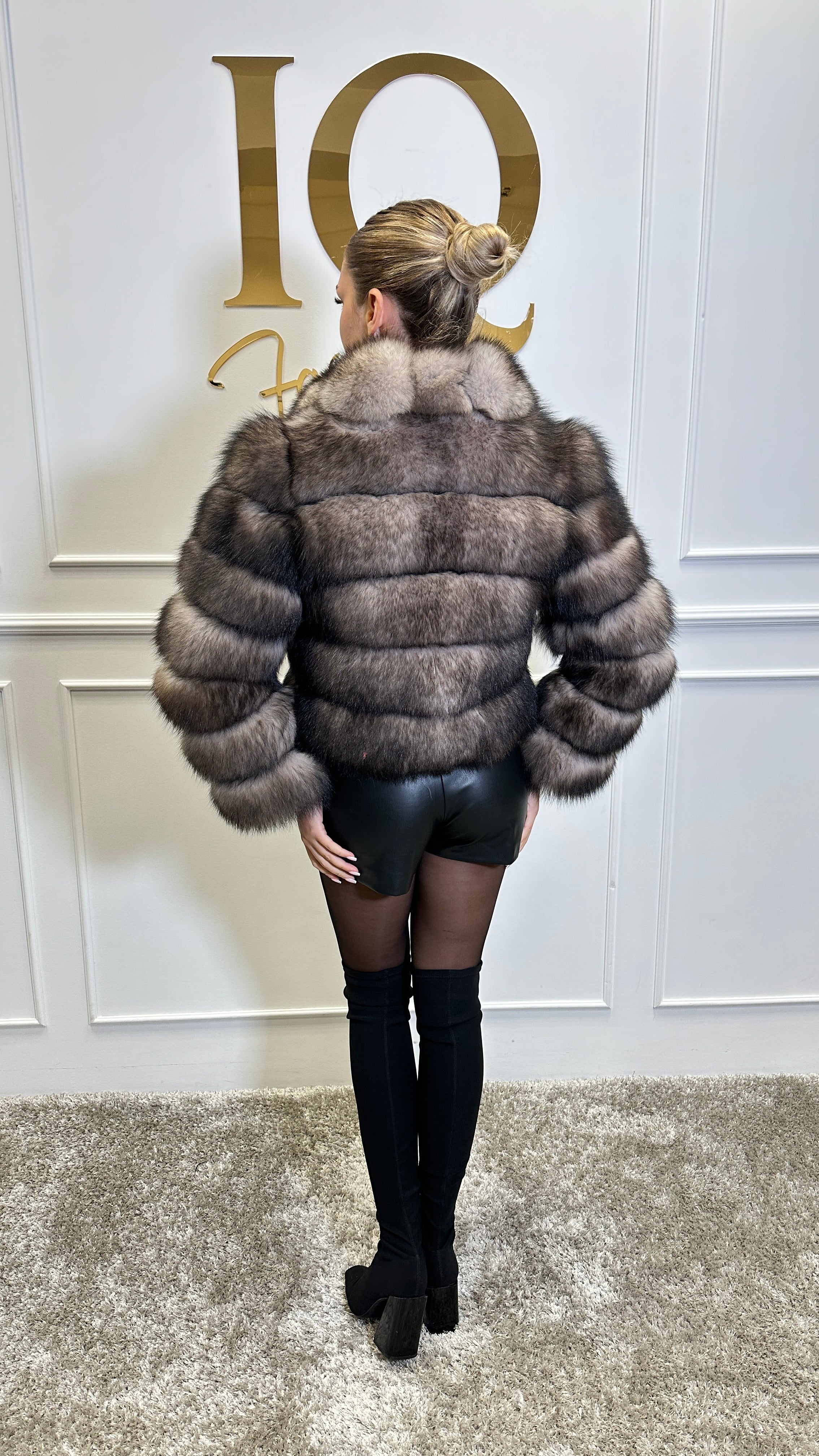 Haina din blana naturala de vulpe arctica .Se realizeaza in 7-8 zile .masura s se potriveste in jurul a 50 kg,M in jurul 55-57 kg.L in jurul 60-62, XL in jurul la 65.Se recomanda sa se comande cu o masura mai mare.EX pt XS se comanda S,etc
