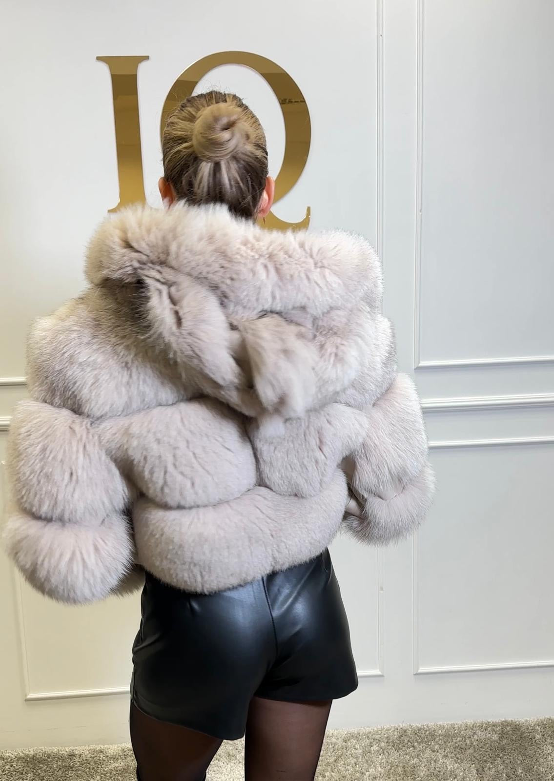 Manechina poarta masura S, are 1,65 si 50 kg. Haina de blana naturala de vulpe arctica cu gluga, se poate executa si pe negru.Se produce in 7-8 zile lucratoaremodel este mai mic croit,se potriveste cu o masura mica,M se potriveste la 53-57 kg iar L in jur de 60-63 kg ,XL in jur de 65-67 kg