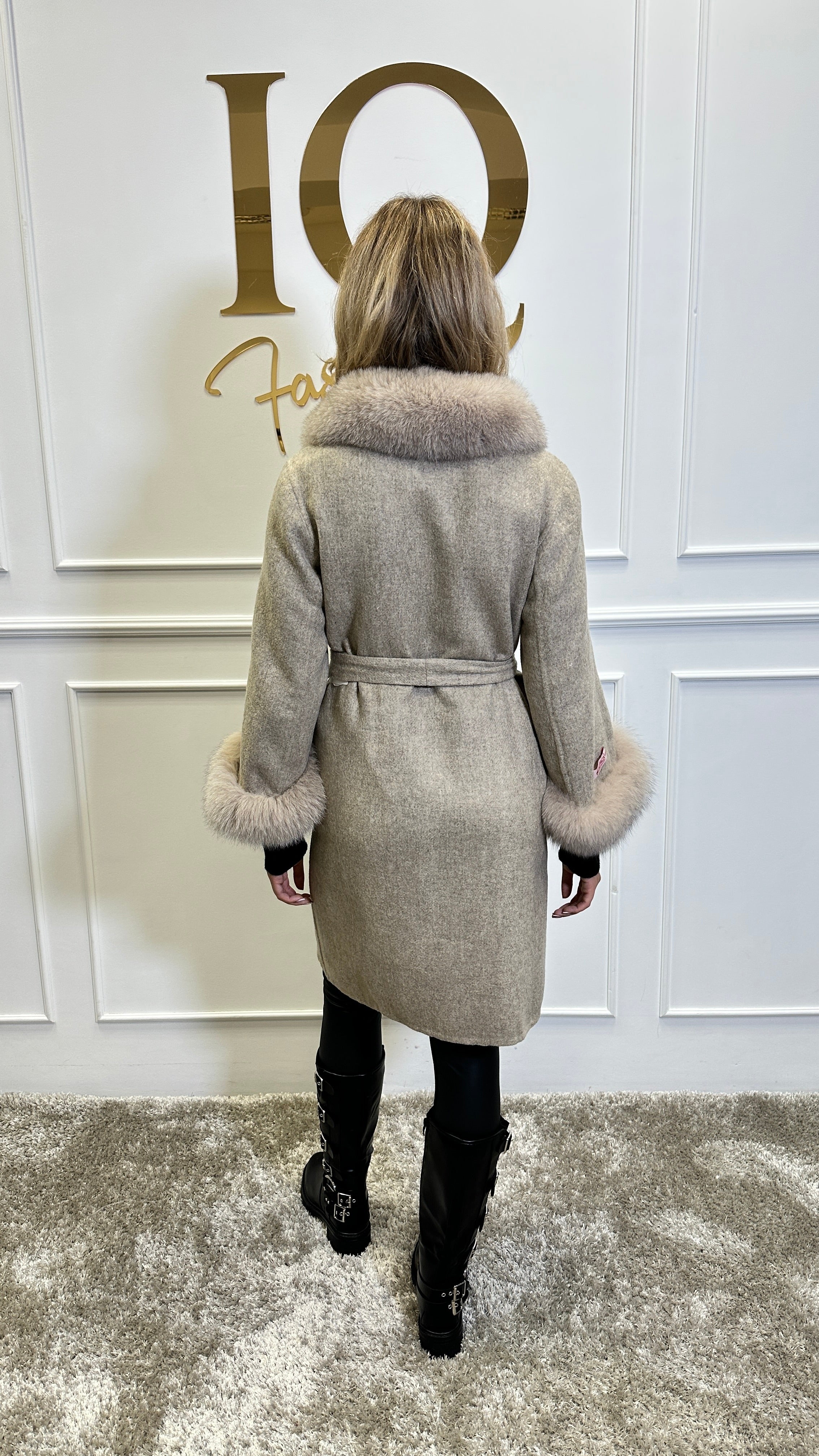 Manechina are 55 kg si poarta masura STesatura este din lana tip Alpaka (lana de lama sud americana) si este accesorizata cu blana naturala .unele masuri se fabrica doar pe baza de comanda in 7-8 zile lucratoare !.Croiul este mai larg,usor supradimensionat!