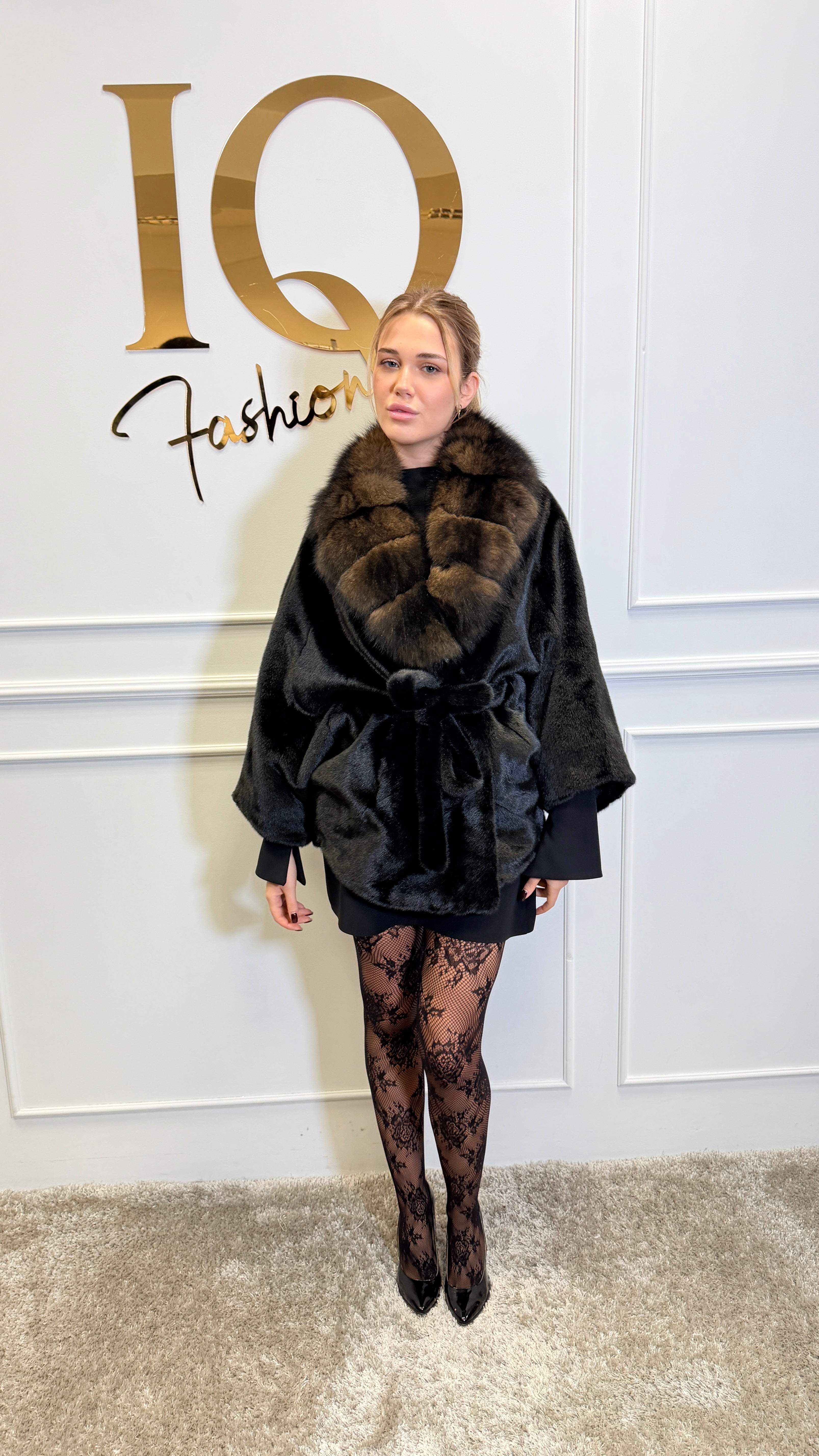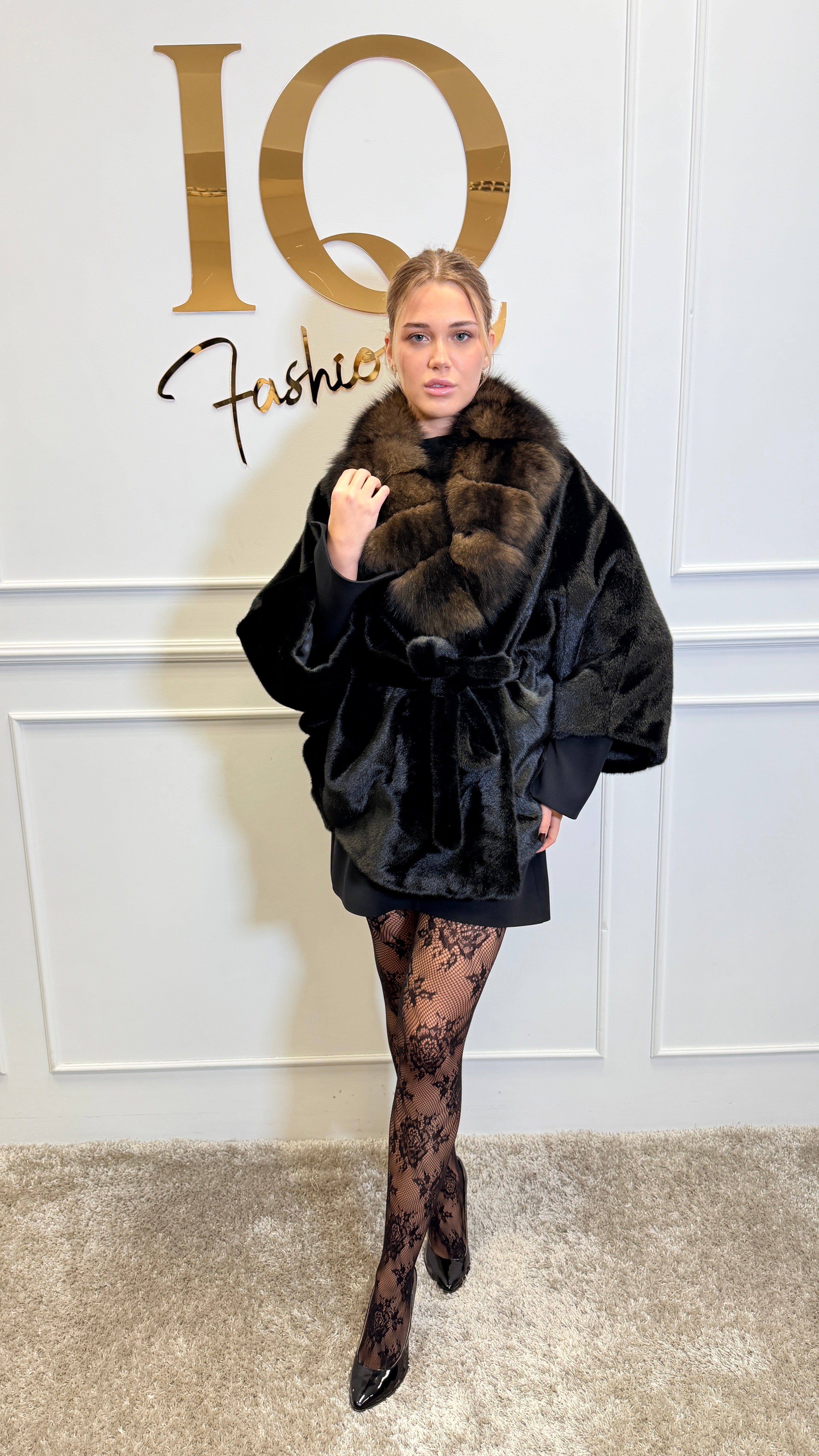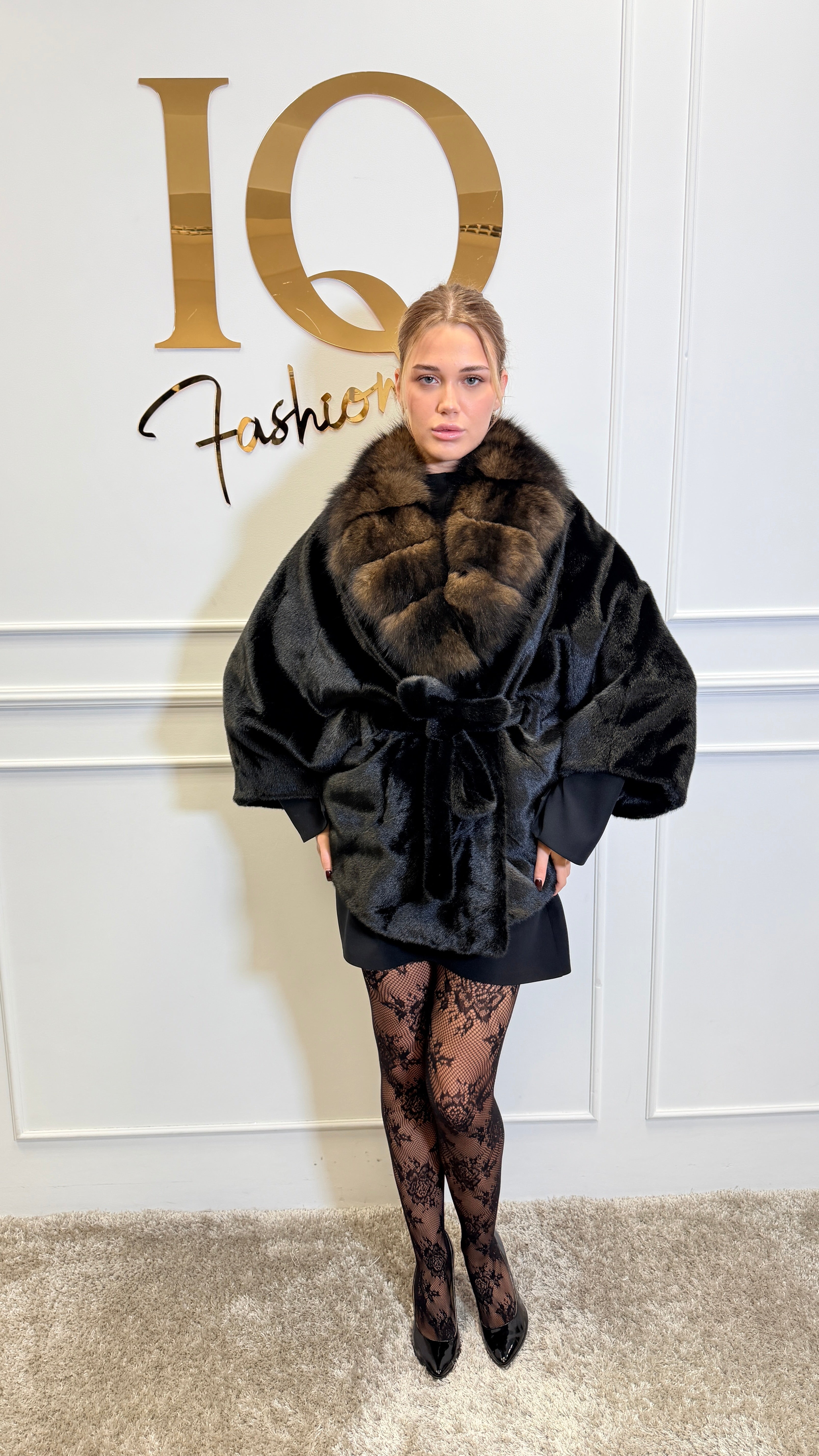 Produs este din lana de alcantara (baby lama)si accesorizat cu blana naturala de vulpe arctica Se poate executa pe multe variante de culoare si pe alte masuri in 7-8 zile lucratoare.Se portiveste si la masuri mari 75-80 kg